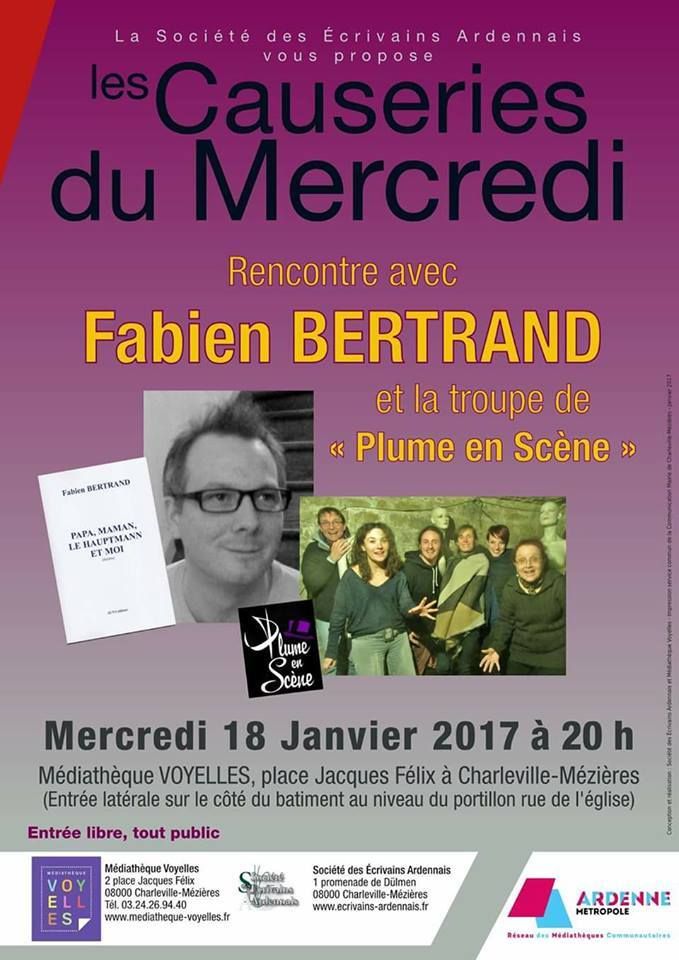 Invitation reçue de La Société des Ecrivains Ardennais à participer aux Causeries du Mercredi, le…